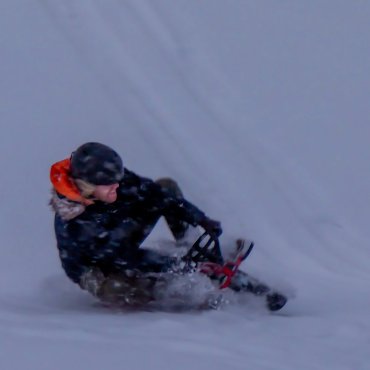 Meet at the designated meeting point for a quick introduction to snowracing and safety tips before picking up your sled. Together, we’ll walk a few minutes to a nearby hill perfect for all levels. We’ll start on easy slopes to get comfortable, then move on to faster runs for more fun. Your guide will be with you throughout the experience—sharing tips, cheering you on, and ensuring everyone has a great time.